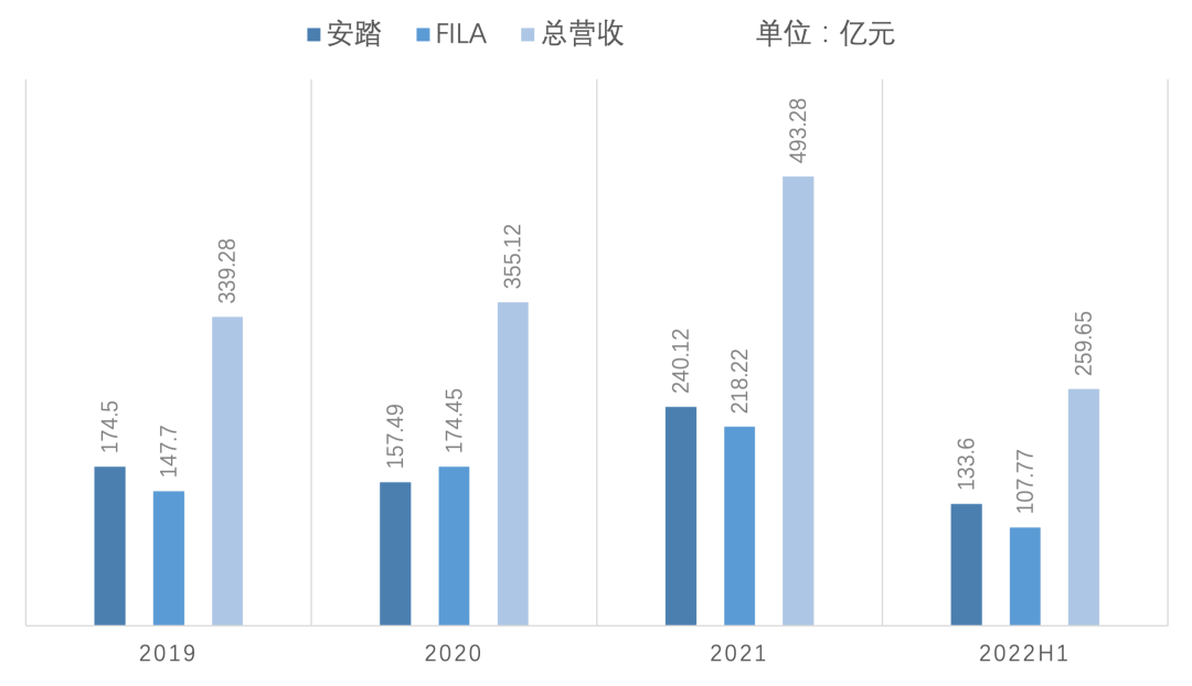 2019年至2022年上半年安踏主品牌及FILA營收情況