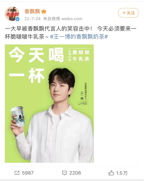 香飄飄也不是沒想過補(bǔ)救的辦法,按照它一貫的邏輯,在電視廣告上砸錢,找流量明星來代言。2019年請(qǐng)了王俊凱,2021年又找了王一博、朱正廷、王菲菲,試圖完成品牌的年輕化,但目前來看,效果很有限。