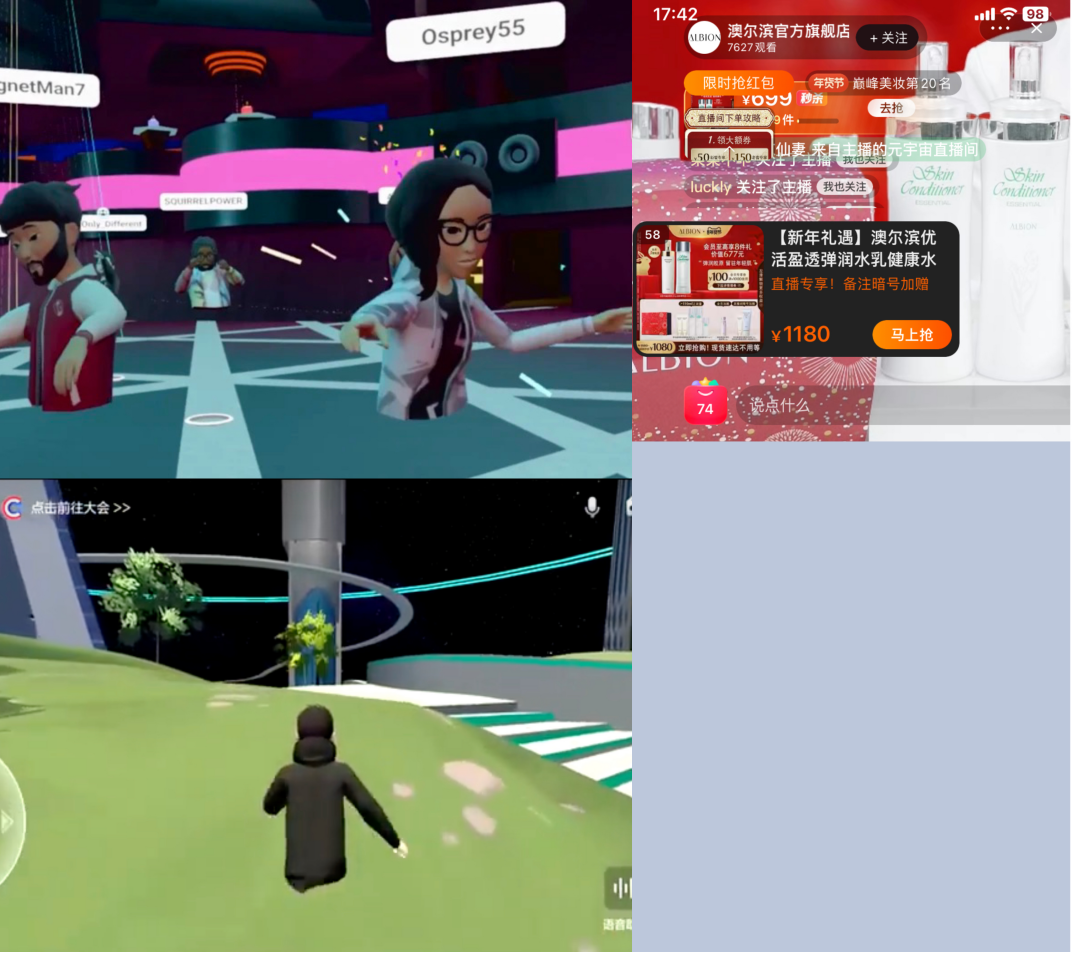 左上為Meta“上半身”飄逸bug;左下為百度希壤的“穿!保挥覀(cè)為淘寶未來城跳轉(zhuǎn)bug