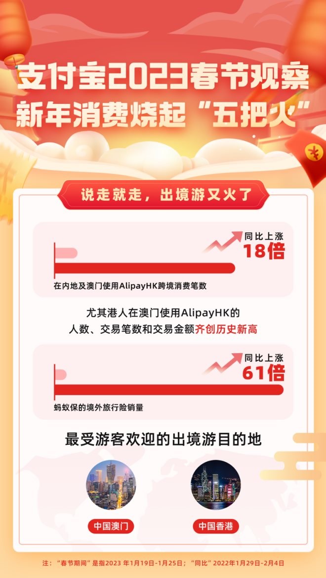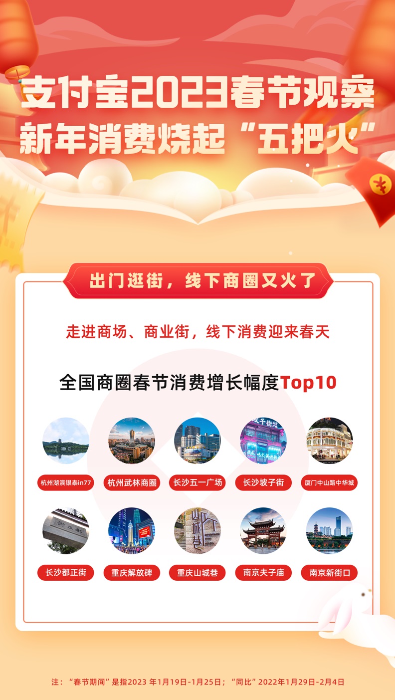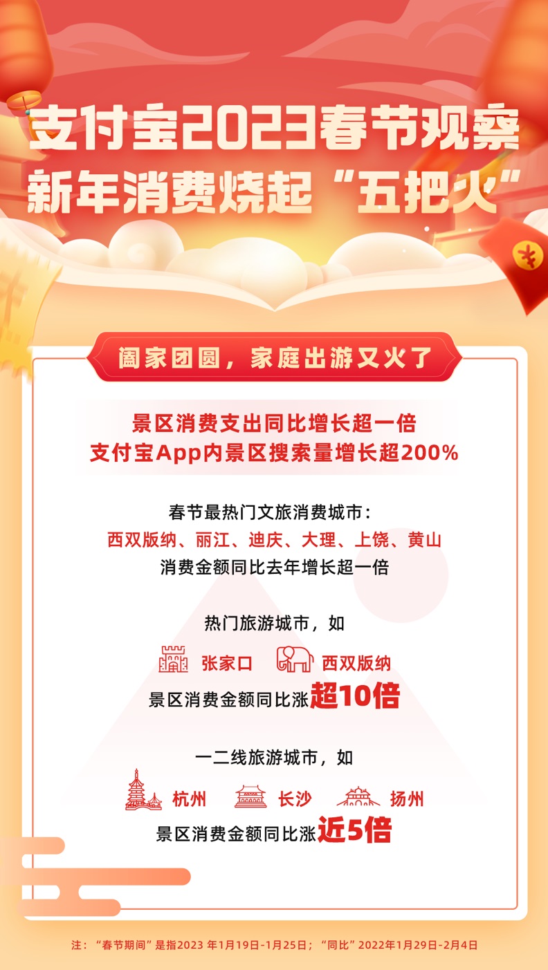 1月27日,支付寶發(fā)布2023年春節(jié)消費(fèi)觀察——新年消費(fèi)燒起5把火,居民消費(fèi)熱情加速回歸。