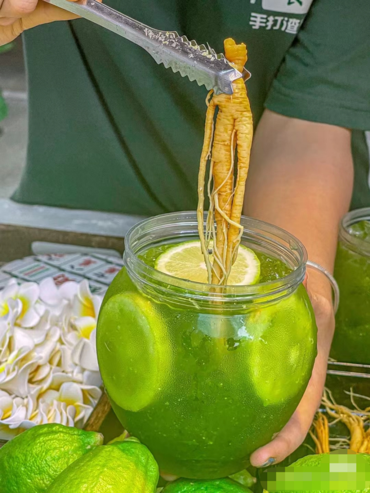 書亦、椿風等品牌也都推出過“熬夜水”類產(chǎn)品,成都的茶飲品牌“食杏手打檸檬茶”直接將人參泡入檸檬茶中。連網(wǎng)友都調(diào)侃“人參沒想到這輩子會有機會和檸檬在一起”。