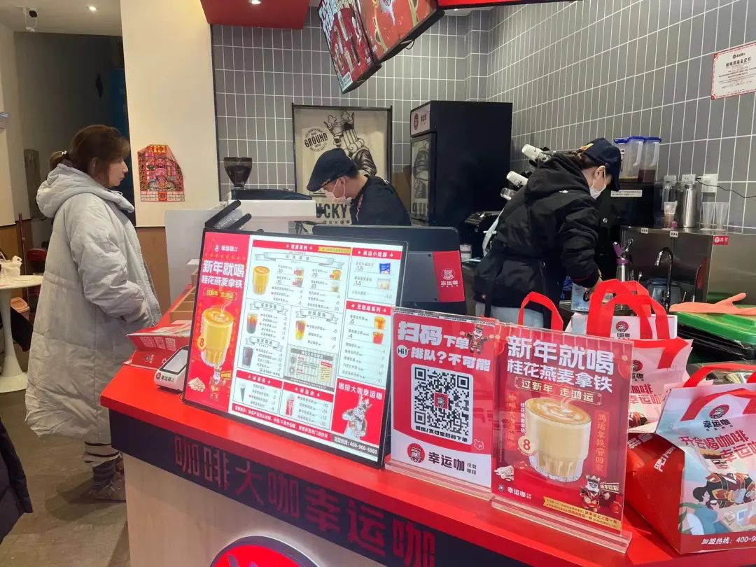 在這個黑龍江五線小城,步行街去年開出的幸運咖,年初二就開始營業(yè),店里坐滿顧客的同時,時不時有外賣員來取訂單。