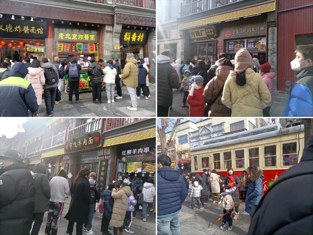 大年初六,在北京前門大柵欄商圈,內(nèi)參君發(fā)現(xiàn),道路兩側(cè)“搬”出了不少小吃檔口。炸醬面、紅柳羊肉串、門釘肉餅、鹵煮、糖葫蘆、臭豆腐、綠豆糕……幾乎每個(gè)檔口前都排起了長(zhǎng)隊(duì)。