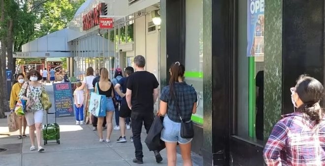 圖片來源:華爾街日報(bào) 人們在Trader Joe's門口排隊(duì)