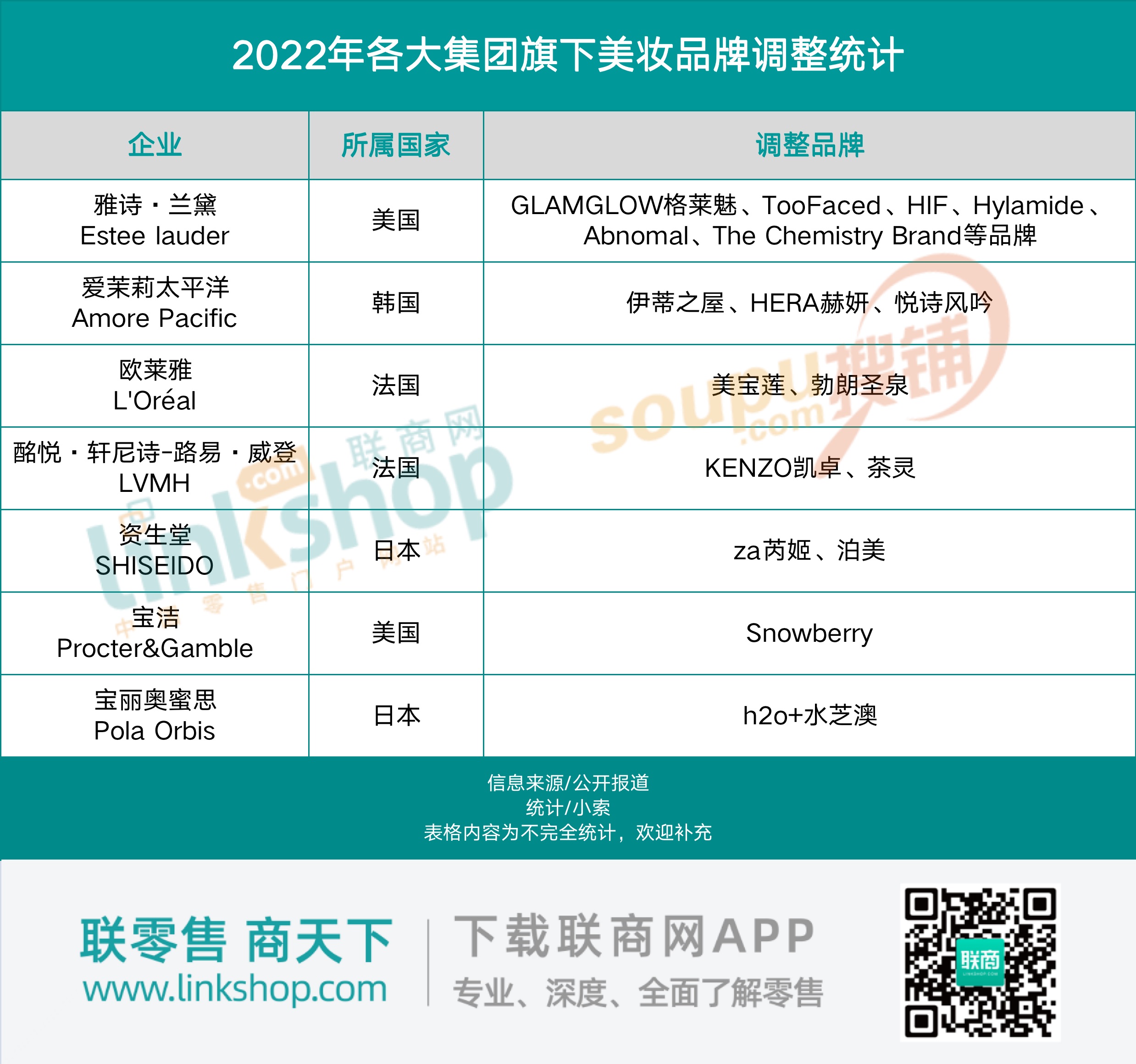據(jù)《聯(lián)商網(wǎng)》不完全統(tǒng)計,2022年國內(nèi)市場上至少有31個美妝品牌調(diào)整了經(jīng)營布局,較2021年(25個)增長了24%,其中既包括美寶蓮、h2o+水芝澳、Za芮姬和泊美等進入中國市場超20年的外資美妝,也有如EqualRXN衡化式、顏效笙等發(fā)展未超過2年的新興國產(chǎn)品牌。