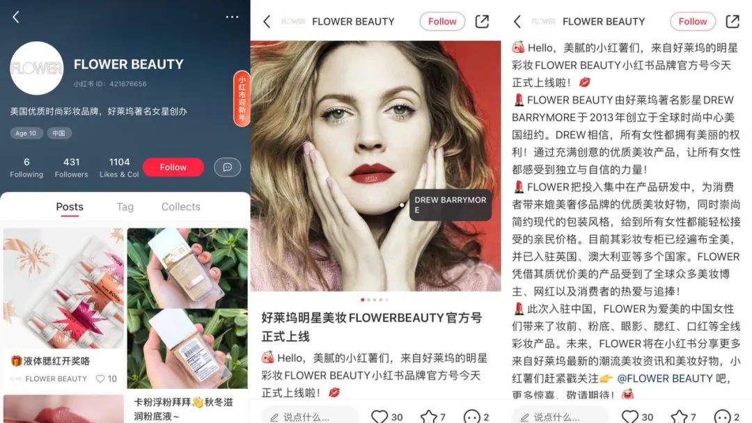 然而,部分海外網(wǎng)紅品牌在進入中國時卻悄無聲息,如美國演員Drew Barrymore所創(chuàng)辦的FLOWER BEAUTY。2019年5月該品牌正式進軍中國,入駐天貓國際,并上架了粉底、眼影、腮紅、口紅等全線彩妝產(chǎn)品。