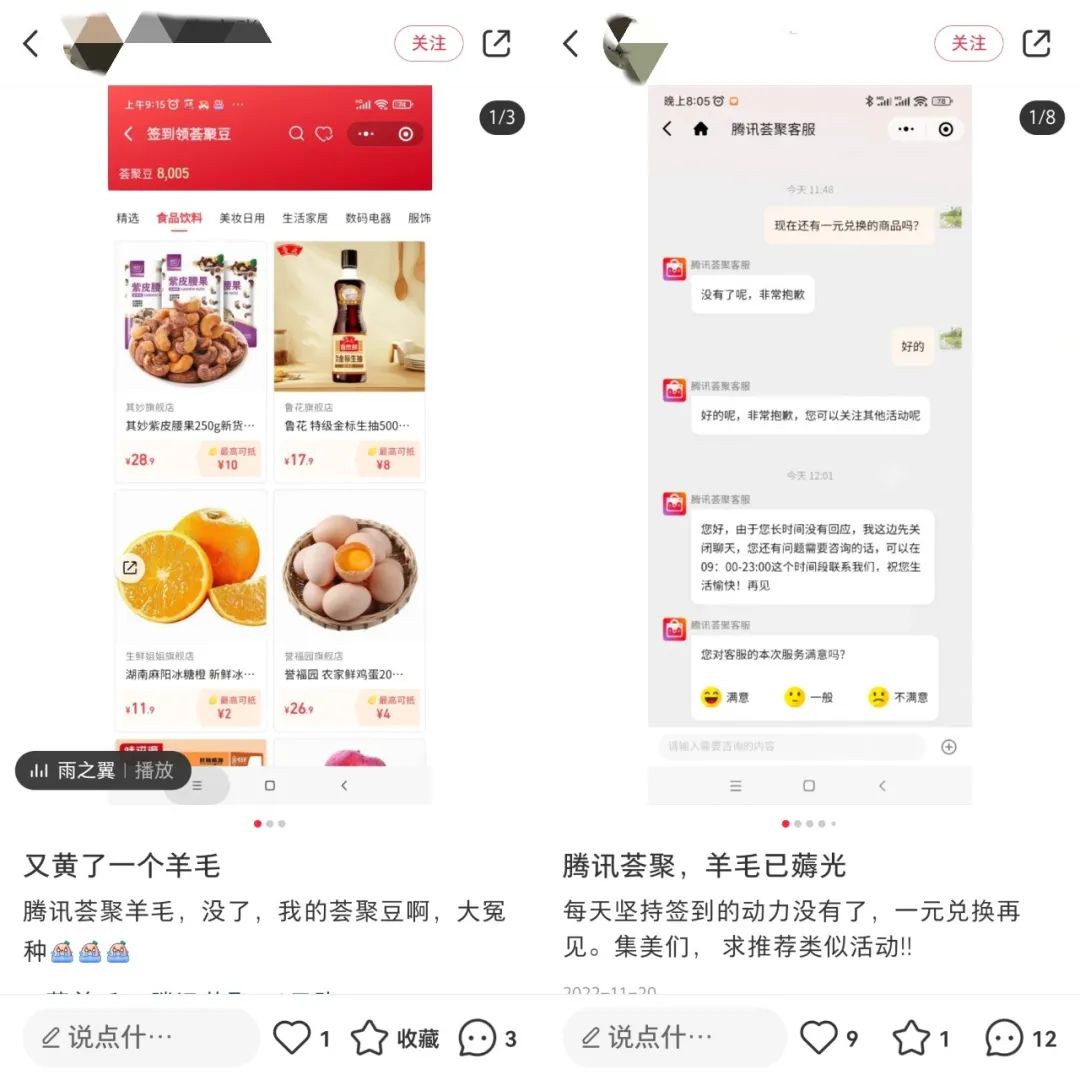 社交平臺上,關于騰訊薈聚最多的討論還是“薅羊毛”,眾多羊毛黨對于轉(zhuǎn)型更多是吐槽“現(xiàn)在沒有羊毛薅了”,而微信九宮格的公域流量供給可能也沒有想象的多,一位消費者就表示,相比于在購物板塊中點進“品牌發(fā)現(xiàn)”,自己更愿意點開京東購物、唯品會特賣或者拼多多去購物。