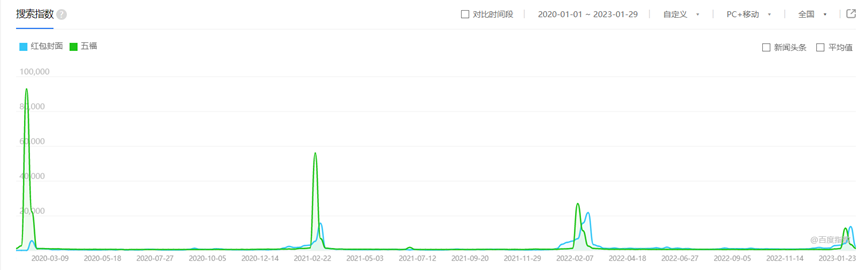 百度搜索指數(shù)“五!眝s“紅包封面”