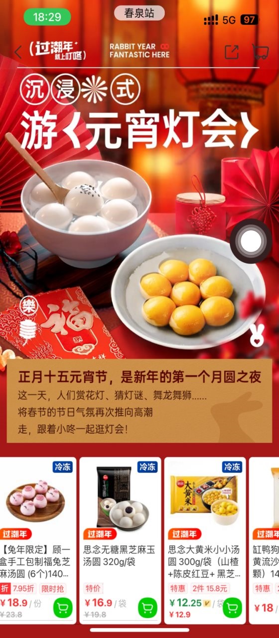 此外在叮咚還能買到適合中老年群體、講究低糖飲食的年輕群體的無糖黑芝麻湯圓,讓他們在享受這一傳統(tǒng)美食的同時(shí)不必再有心理負(fù)擔(dān)。還有兔年“限定”的“福兔芝麻湯圓”,粉萌的造型為元宵節(jié)餐桌增添更多的樂趣,被很多年輕用戶和有娃家庭喜愛。