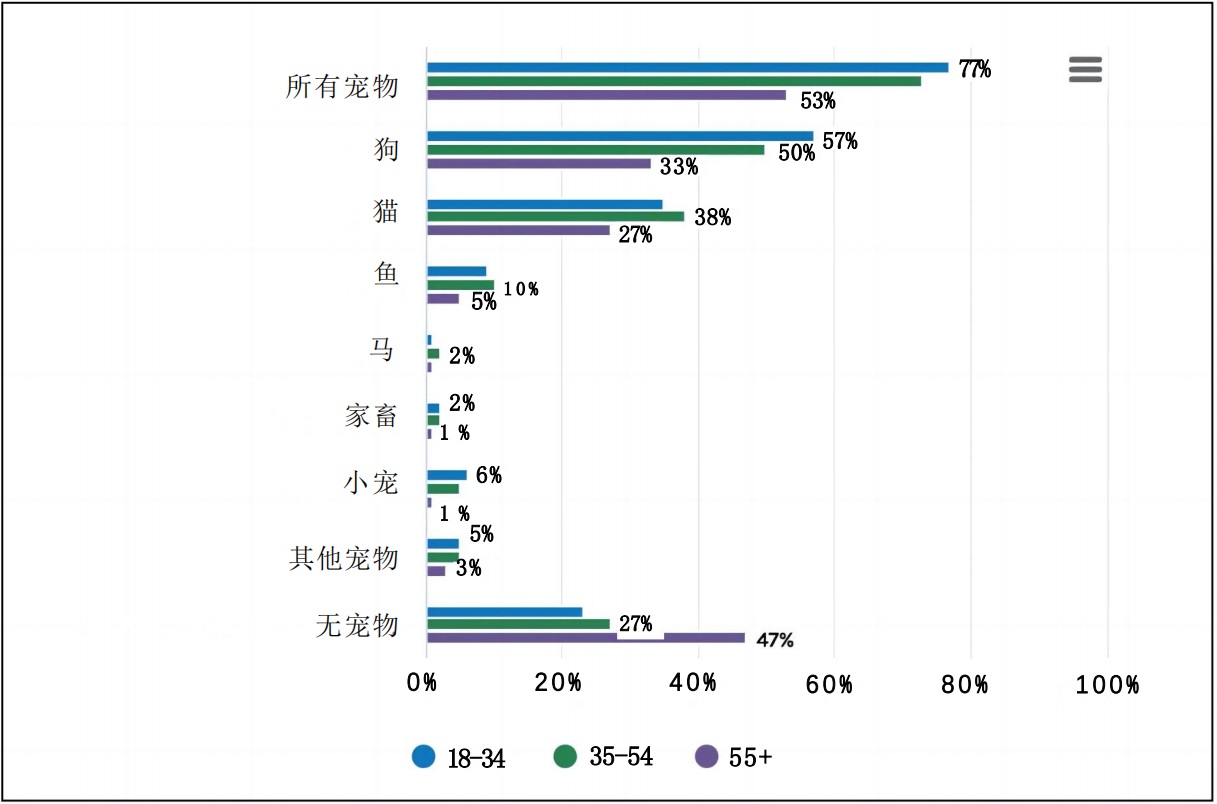 新冠疫情以來(lái),年輕的美國(guó)人助長(zhǎng)了寵物購(gòu)買熱潮。調(diào)查結(jié)果顯示,約三成18至34歲的受訪者表示,他們是在過(guò)去6個(gè)月購(gòu)買的寵物。相比其他年齡段的客戶群體,這些年輕人在寵物食品、寵物治療和護(hù)理方面花費(fèi)更多金錢。