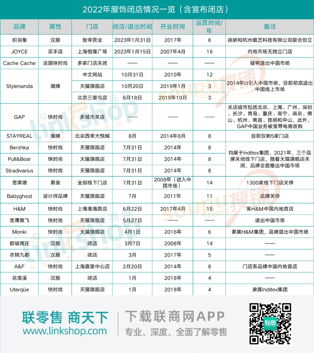值得注意的是,2022年,僅ZARA母公司Inditex集團就有4個品牌宣布退出。