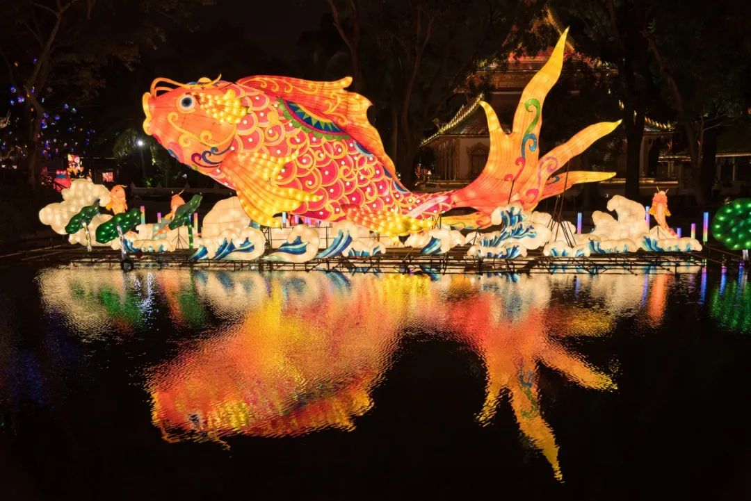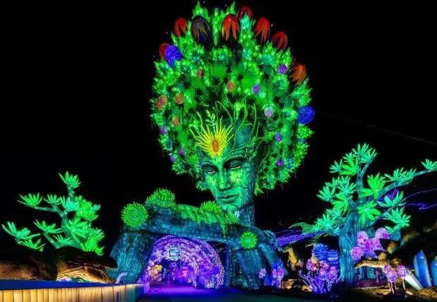 還能夠融合現(xiàn)代科技,呈現(xiàn)如燈光秀、水幕、裸眼3D、智能投影等夢幻的現(xiàn)代裝置光影,使彩燈能動(dòng)、能唱、能變,讓男女老幼都能在光影中找到樂趣。