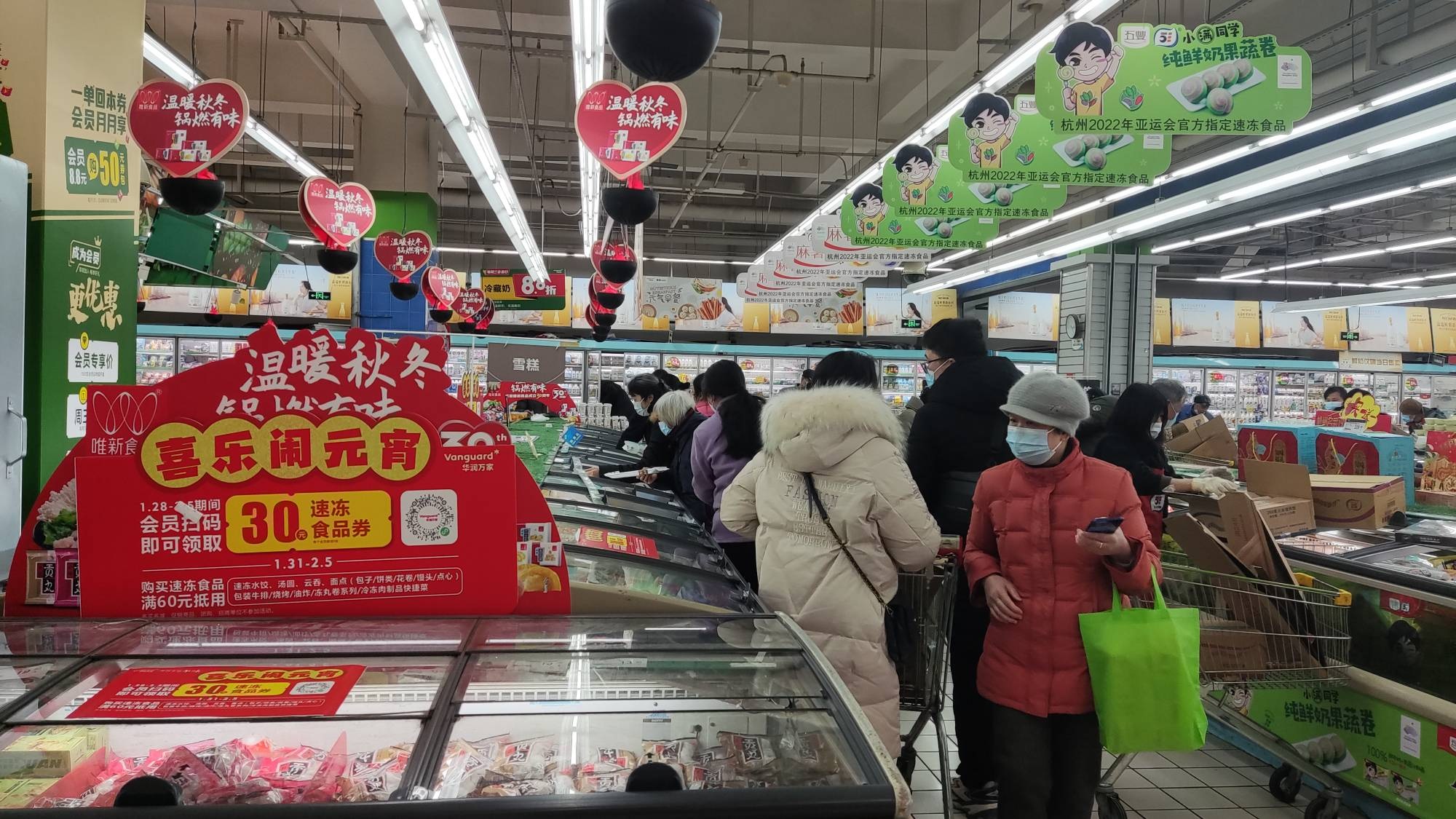 “每年元宵節(jié)前后,超市都會(huì)推出速凍食品5折活動(dòng)。我已經(jīng)連著五、六年過來大“囤”貨了。過完年我就開始慢慢清空冰箱騰出地方,等著華潤(rùn)萬家活動(dòng)開始,孩子愛吃的兒童牛排是必須大量買的,還有全家平常早餐吃的水餃、刀切、小米糕、紅糖饅頭這些早餐速凍品,當(dāng)然我也囤了元宵節(jié)必備的芝麻湯圓,算算這樣一車便宜商品比平常便宜將近300塊呢,真當(dāng)實(shí)惠哦!”忙著往購(gòu)物車塞商品的鄭女士喜滋滋向記者介紹。