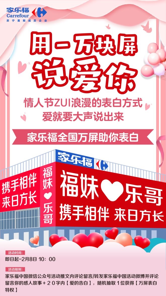 家樂福推出“用一萬塊屏說愛你”全國性大型情人節(jié)表白活動