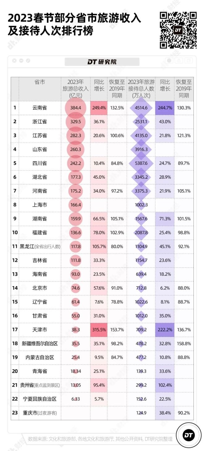 敢于公開的,表現(xiàn)都不錯(cuò),其中天津、云南、湖南、福建、江蘇等地春節(jié)旅游收入超過了2019年同期水平。