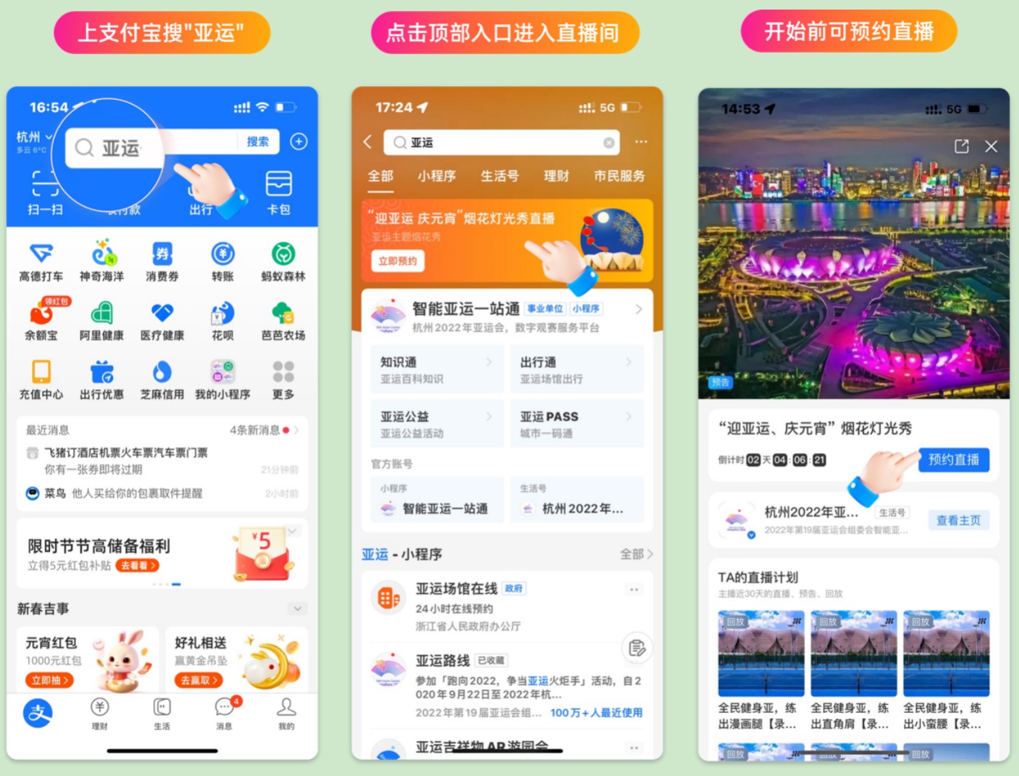 沒(méi)能去現(xiàn)場(chǎng)軋鬧猛的小伙伴們,也可以通過(guò)直播鏡頭一睹盛況,上支付寶搜“亞運(yùn)”,進(jìn)入智能亞運(yùn)一站通小程序,看直播還能參與抽獎(jiǎng)贏亞運(yùn)周邊好禮。杭州亞運(yùn)會(huì)官方微博、視頻號(hào)等平臺(tái)也將同步直播。