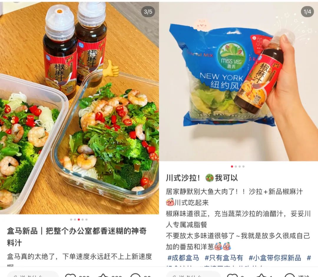 比如,蔬菜是消費(fèi)頻次最高的食材,市面上的蔬菜調(diào)味料卻不多,中式?jīng)霭璨苏{(diào)味品更少見(jiàn)。2022年,盒馬推出匠醬好中式沙拉川式椒麻汁,上市一個(gè)月霸榜調(diào)味品銷(xiāo)售榜首。有網(wǎng)友稱(chēng)它“拌鞋底”都好吃,除了拌菜,還用來(lái)蘸餃子、拌面條。