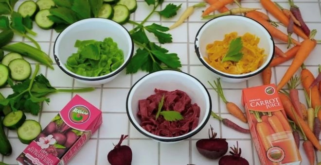 烹飪場(chǎng)景也是蔬菜汁拓寬場(chǎng)景的新思路。例如,RUGANI JUICE針對(duì)自己的蔬菜汁產(chǎn)品矩陣為消費(fèi)者提供了相關(guān)的DIY食譜:番茄汁做番茄燉牛肉、番茄沙冰,胡蘿卜汁、甜菜根汁中穩(wěn)定的天然色素可以做五彩拉面,還可以DIY雞尾酒、輕食沙拉......
