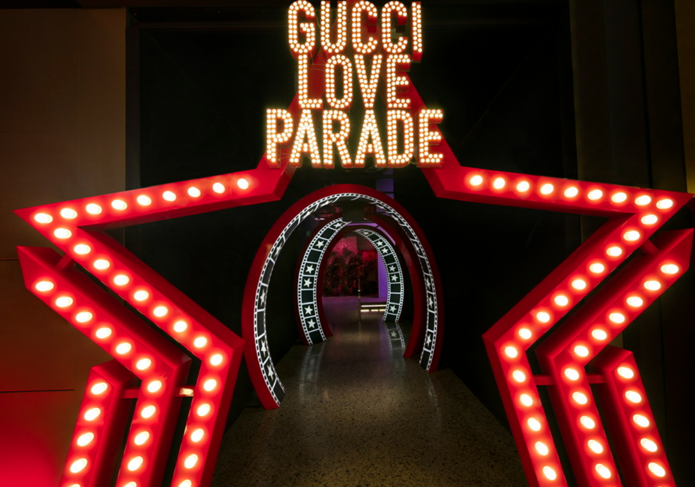 GUCCI作為傳統(tǒng)奢侈品中最大膽且最具Z時代審美的品牌,在3月份就與成都夜店TERMINAL 61跨界合作,在成都打造了“GUCCYWOOD俱樂部”限時快閃夜店。