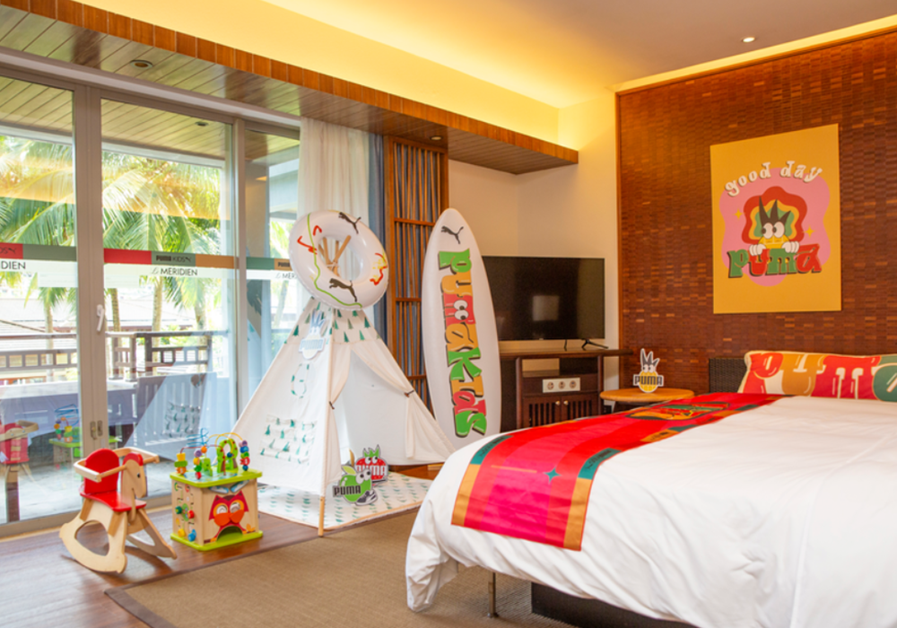 去年7月在海南,全球知名運動品牌PUMA與石梅灣艾美度假酒店聯(lián)手打造水果沙灘節(jié)。用聯(lián)合設(shè)計的聯(lián)名房型,迷你帳篷、動感沖浪板等聯(lián)名道具,還有PUMA KIDS限量定制伴手禮及聯(lián)名下午茶套餐,給消費者留下充斥品牌LOGO的夏日限定回憶。