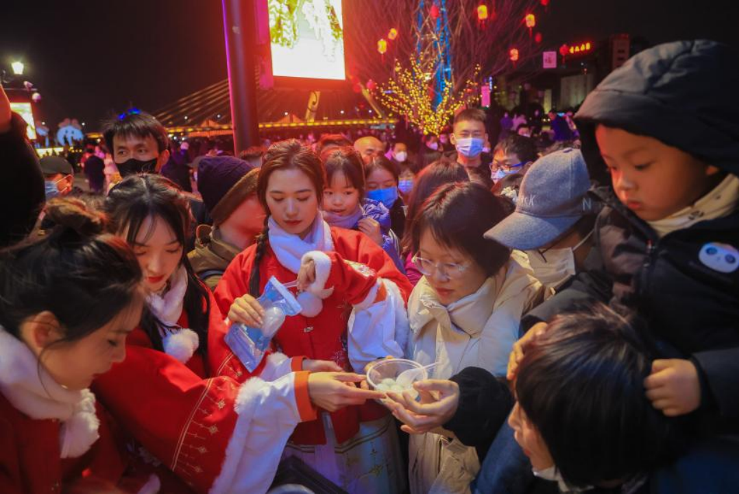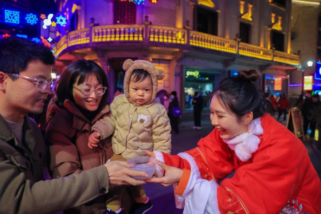 湯圓象征著團(tuán)圓與幸福,在2月4日-2月5日晚,將一碗碗熱乎的湯圓遞到老外灘街區(qū)商戶、過往游客、保潔人員和物業(yè)保安手中,在聲聲祝福中共度歡樂元宵佳節(jié)。
