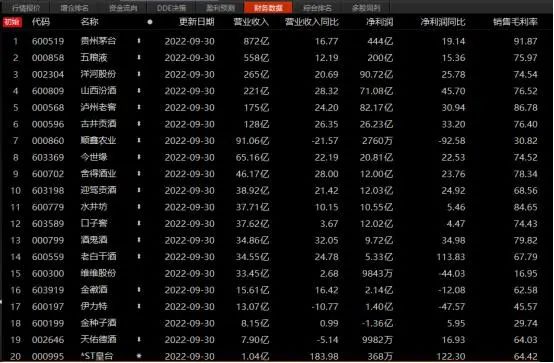 從2022年第三季度財(cái)報(bào)來(lái)看,20家白酒上市公司中,19家都實(shí)現(xiàn)了凈利潤(rùn)的正增長(zhǎng)。茅臺(tái)、五糧液、洋河、山西汾酒、瀘州老窖穩(wěn)居前五,即使為百億營(yíng)收規(guī)模下,仍舊保持著營(yíng)收凈利的雙增長(zhǎng)。