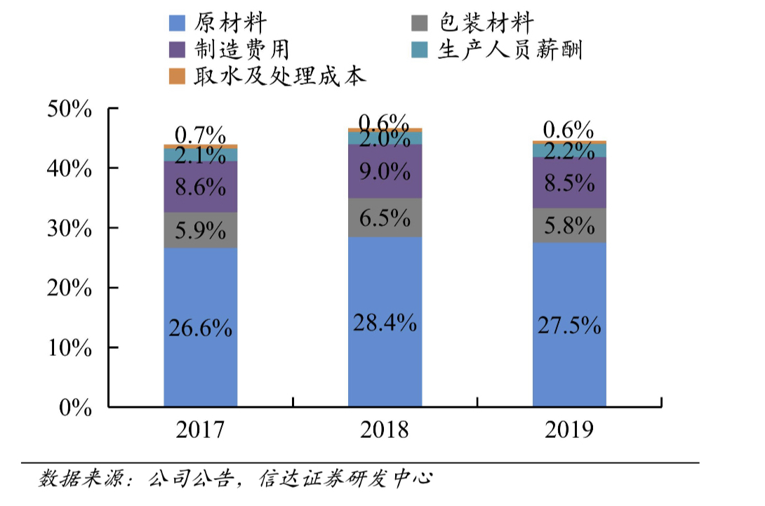 農(nóng)夫山泉成本結(jié)構(gòu) 資料來源:信達(dá)證券研報