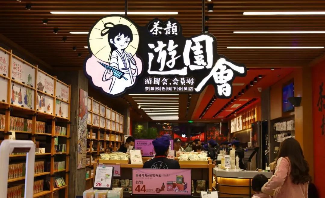 國內(nèi)品牌最會賣周邊的非茶顏悅色莫屬,直接開出線下店,或是將游園會內(nèi)置到門店內(nèi),甚至部分門店中周邊售賣區(qū)域大于奶茶區(qū),周邊收入也逐年攀升。