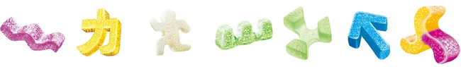 如2019年發(fā)售的“爆笑軟糖”(カンデミーナグミ 爆笑エナジーソーダ),就將軟糖做成了日語里的「ハ」「ヒ」「ヘ」「w」等模擬笑聲的文字形狀,將笑聲“可視化”,不僅可以隨意發(fā)揮擺出不同的”笑聲“,不同形狀的軟糖口感也不相同,以可吃可玩的趣味性一掃夏日酷暑帶來的憂郁心情。