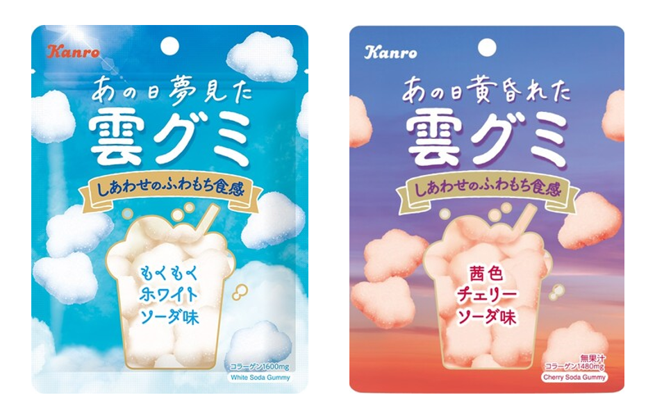 2021年發(fā)售后大受好評,快速售罄,2022年再發(fā)售的云朵軟糖系列,則以“仿佛在吃掉天上漂浮的云彩”為概念,模擬了晴空中的白云和夕陽染紅的云朵,具有柔和的甜味和恰到好處的蓬松感,搭配柔軟的視覺效果,不管是直接吃還是漂浮在飲料等食物上做點綴都令人極其治愈放松,尤其被Z世代在社交媒體上進行了廣泛分享。
