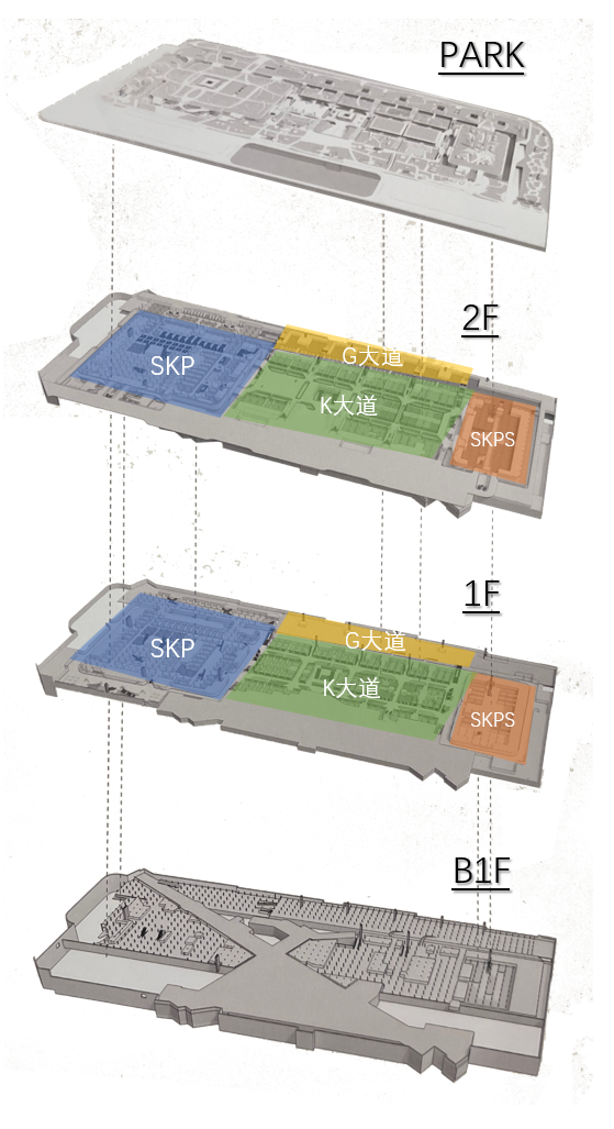 據(jù)于此,SKP在官方指引中,創(chuàng)造了一個(gè)新的參照體系——將地下首層定義為2F,地下2層定義為1F,BHG超市所在層定義為B1F。