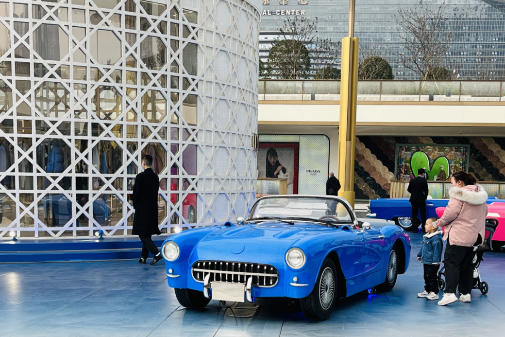 位于其北面的是DIOR x ERL Dior Men 2023年春季膠囊系列快閃,以勞斯萊斯老爺車車模展現(xiàn)威尼斯海灘風(fēng)情式的美國(guó)文化。