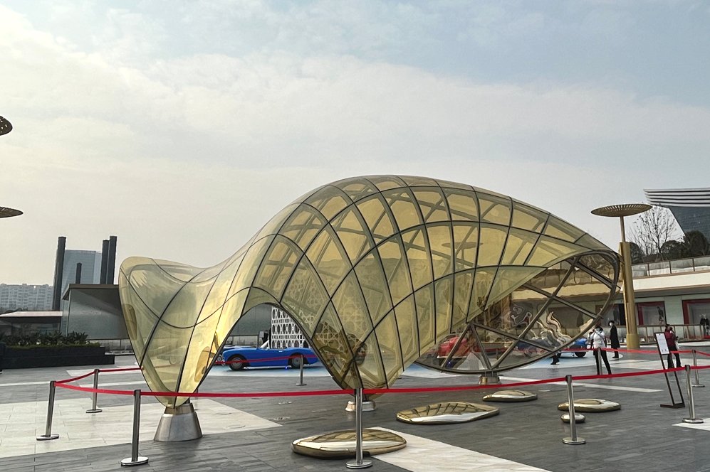再往北,則是“琥珀”藝術(shù)裝置,以帶有反光屬性的材質(zhì),表達(dá)著多重元素的交融。