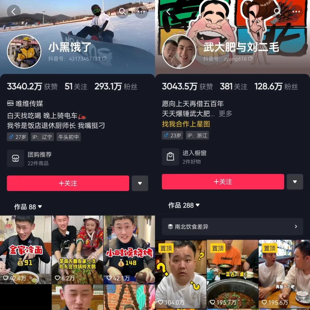 主打南北美食的賬號(hào)