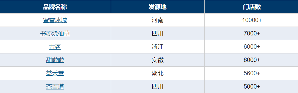 再看品牌。據(jù)FoodTalks全球食品資訊網(wǎng)數(shù)據(jù),門店量超過5000梯隊的玩家中,只有蜜雪冰城所在的河南地處北方,甜啦啦所在的安徽蚌埠和益禾堂所在的湖北武漢均處于南北分界線附近,但若嚴格按照秦嶺-淮河劃分,仍屬南方。