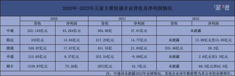 近三年五家主要快遞企業(yè)業(yè)績(jī)情況 / 深燃制圖
