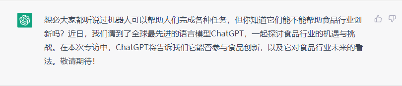 FBIF:請(qǐng)為《ChatGPT: 別問了,我暫時(shí)還做不了食品創(chuàng)新!》這篇文章,寫一段有趣的開頭。