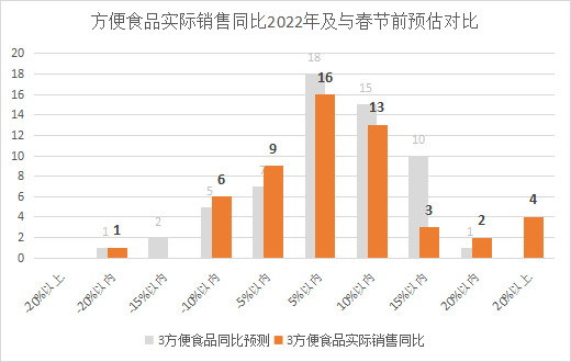 9、方便食品(餅干、曲奇、派類、沖調(diào)食品、保健品、方便餐、巧克力、嬰兒食品)的表現(xiàn)也不錯,銷售同比2022年增長20%以上的有4家,增長15-20%的有2家,增長10-15%的有3家,增長5-10%的有13家,增長5%以內(nèi)的有16家,有16家同比下降。同比下降的企業(yè)大多是因為缺貨和新品引進不足。此外,消費者客群把控、商品便利程度也起影響作用。