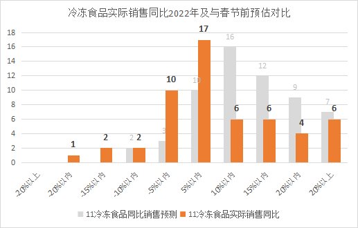 7、冷凍食品(速凍面點、速凍料理含炸貨、涮貨、冷凍蔬菜等)大部分表現(xiàn)較平穩(wěn),銷售同比2022年增長20%以上的有6家,增長15-20%的有4家,增長10-15%的有6家,增長5-10%的有6家,增長5%以內(nèi)的有17家,只有15家同比下降。