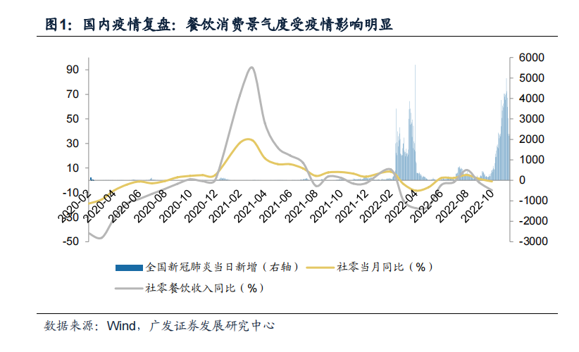 在2021年疫情得到基本控制的時候,餐飲及消費行業(yè)數(shù)據(jù)都有明顯的復蘇跡象。2022年疫情形勢嚴峻后,餐飲消費景氣度又急劇下降。