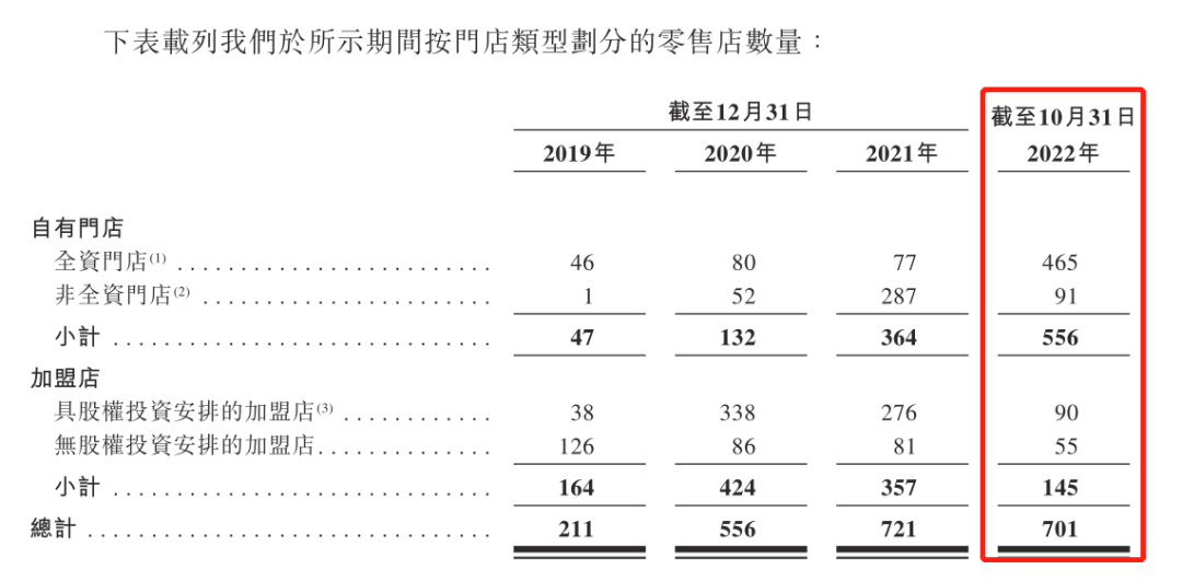 2019年,公司自營門店僅有47家,加盟門店高達(dá)164家。2020年,自營門店增至132家,加盟門店則增至424家,公司的加盟店數(shù)量達(dá)到頂峰。這一年,加盟店對公司收入的占比達(dá)到57.5%,遠(yuǎn)超自營門店35.4%的貢獻(xiàn)率。