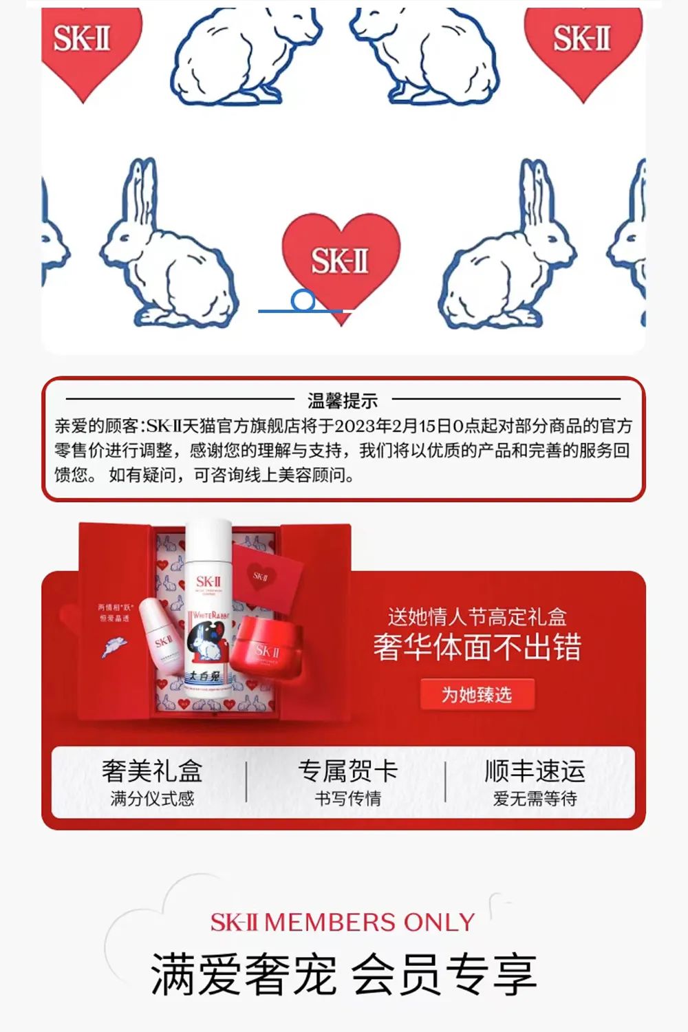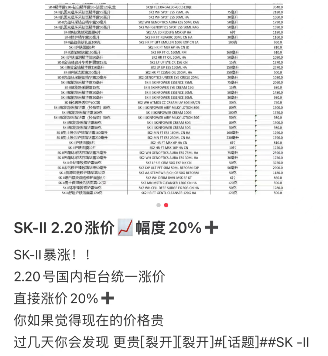 2月14日情人節(jié),SK-II或許能靠著要漲價(jià)在一眾美妝品牌成為送禮首選。根據(jù)SK-II天貓官方旗艦店公告,2月15日0點(diǎn)起,將調(diào)整店內(nèi)部分商品的官方零售價(jià)。