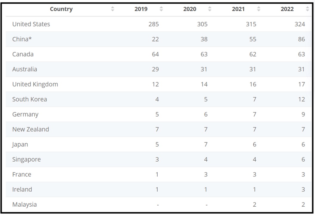 2019—2022年,lululemon全球門店數(shù)量。圖源:lululemon官網(wǎng)