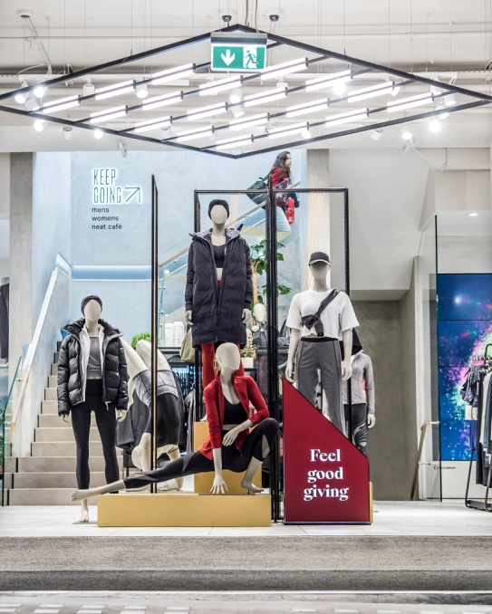 在實(shí)體店中,除產(chǎn)品以外的多功能區(qū)成為必不可少的元素。圖源:lululemon官方