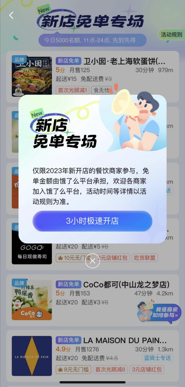 據(jù)悉,這次新店免單活動主要面對2023年在餓了么平臺新開店的餐飲商家,首批專項活動率先在北京、上海、廣州、杭州等數(shù)十個城市上線,并將盡快拓展至全國。
