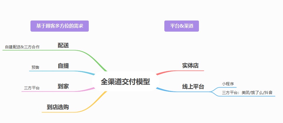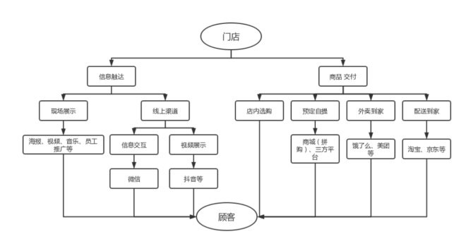 全渠道運(yùn)營的出發(fā)點(diǎn)是顧客信息獲取及消費(fèi)渠道的多元化;陂T店,借助各種平臺(tái)和渠道形式,統(tǒng)籌線上、線下宣傳和信息觸達(dá),開展門店選購、預(yù)定自提、外賣到家和配送到家等多樣化服務(wù)。