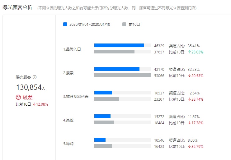 平臺(tái)曝光情況 ,明顯可見搜索入口客流下降嚴(yán)重