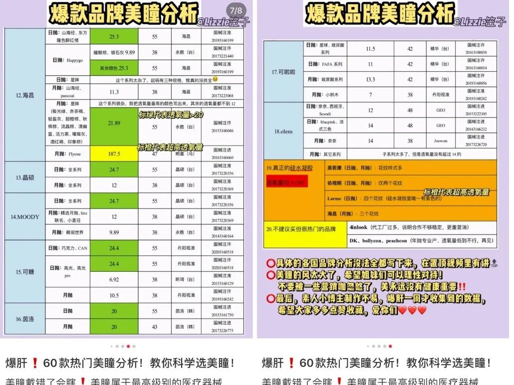 事實(shí)上,正如趙欣蕓所說,材質(zhì)正成為消費(fèi)者篩選彩瞳的重要標(biāo)準(zhǔn)。在小紅書等平臺(tái),就有不少博主對(duì)各大品牌的透氧量、含水量等做出對(duì)比評(píng)測(cè)。