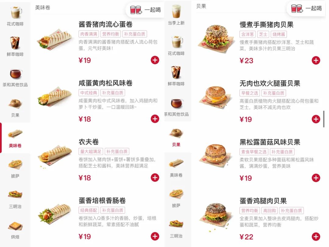 西餐顯然是跨度最小的一個方向,品牌基本上是只需要進一步去增加烘焙類SKU就能夠覆蓋到午餐,比如星巴克和瑞幸自去年下半年加大烘焙端供給,以可頌、貝果、卷、漢堡、三明治滿足午餐需求。事實上不少海外咖啡品牌在其原本的市場上也一直都有布局,經(jīng)驗可以完全復(fù)制,Tims中國CEO盧永臣就表示咖啡+暖食的組合是延續(xù)了Tim Hortons在加拿大的傳統(tǒng)。