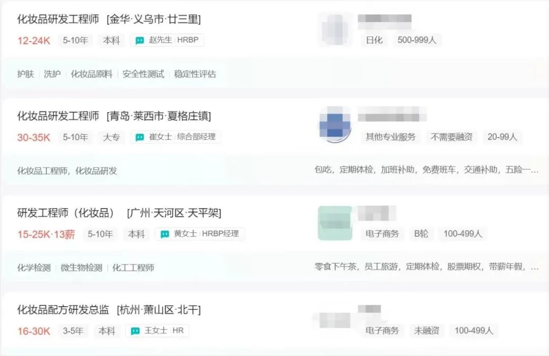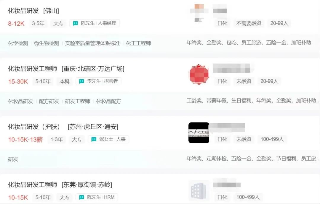 國貨美妝開始“卷”研發(fā)已成為當(dāng)下一大共識,從開年以來各個(gè)化妝品企業(yè)的招聘情況就可見一斑。近期青眼在各招聘軟件上看到,不少公司就在招聘化妝品研發(fā)工程師、配方師等崗位,其中不乏部分知名品牌和新銳品牌等。從薪資水平上來看,研發(fā)工程師的月薪普遍在1萬元至3萬元左右,也有部分公司的月薪高達(dá)3.5萬元。